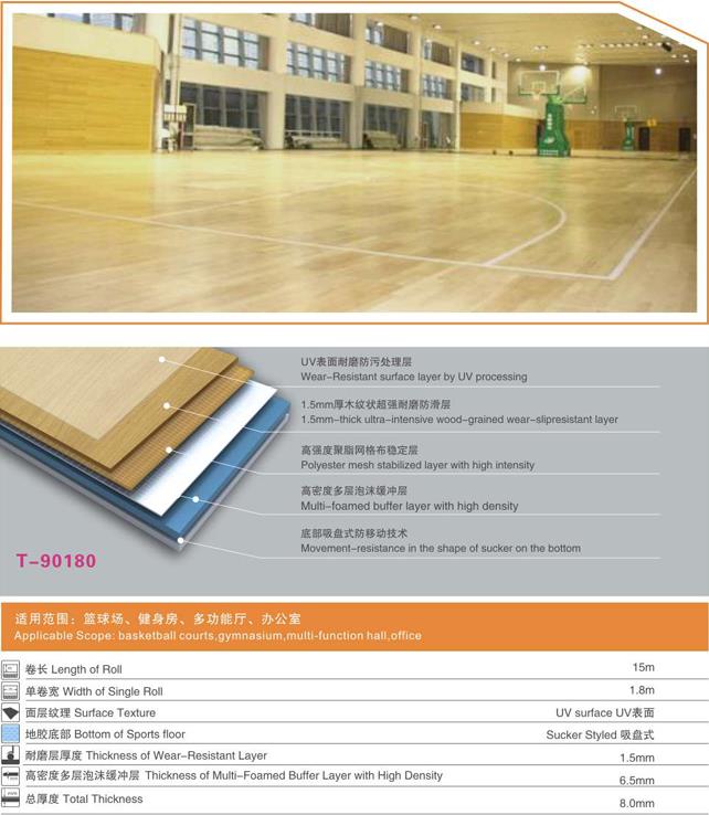 天速地板 籃球運(yùn)動(dòng)地膠 經(jīng)典木紋系列T-90180